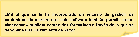 Según esto, una plataforma debe incluir al menos: - la gestión administrativa (matriculación del alumnado, asignación de personal de tutorización, configuración de cursos, etc.), Como decíamos en la Introducción, conectado con estos términos, encontrábamos también el término LCMS, y de una forma muy sencilla podemos definirlo como un: